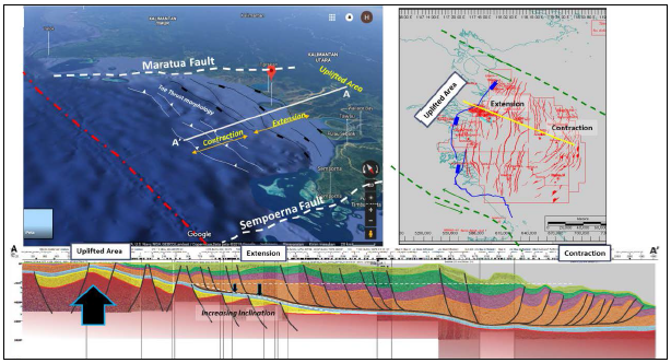 Subcekungan Tarakan sangat menarik namun kurang dieksplorasi. Di sebelah utara, subcekungan ini dibatasi oleh Sesar Sampoerna dan di selatan dibatasi oleh Sesar Mangkalihat. Kedua patahan regional tersebut merupakan patahan geser mengiri yang menghasilkan pengaturan unik terhadap proses sedimentasi delta dan proses deformasi yang terjadi di daerah tersebut.