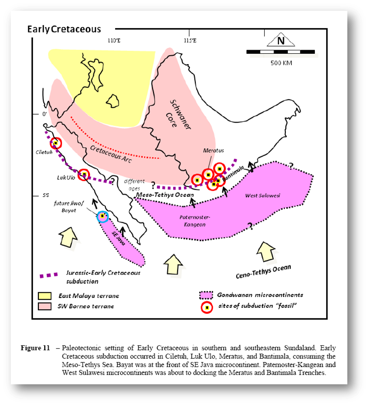 The history of plate convergence in southern and southeastern Sundaland recorded subduction of oceanic plate during Jurassic to Late Cretaceous started from Meratus, Bantimala, Luk Ulo, to Ciletuh. The geochronology of subduction is based on subduction-related high pressure to ultra/very high pressure glaucophane schists and eclogites. Subduction chased in Bantimala and Meratus trenches in mid-Cretaceous due to docking of West Sulawesi and Paternoster-Kangean microcontinents, respectively. During the Late Cretaceous, subduction migrated to Paternoster trench resulting in volcanic and magmatic rocks as well as forearc sediments in Meratus and Bantimala. In Paleogene time, Meratus and Bantimala separated by the opening of the Makassar Straits, sitting on Paternoster and West Sulawesi microcontinents. Subduction in Ciletuh and Luk Ulo continued into the Late Cretaceous, but possibly with different characters of subduction compared to that of Early Cretaceous due to the absence of Late Cretaceous subduction-related metamorphic rocks. Jiwo Hills, Bayat which has been considered as the continuation of Luk Ulo, is considered not to compose the subduction zone due to the absence of subduction-related rock assemblage. The mid-Cretaceous glaucophane schist of Bayat may relate with docking of SE Java microcontinent in this area. Eocene shallow marine Wungkal-Gamping carbonate shows that Bayat is different with Luk Ulo and Ciletuh which in Eocene were characterized by slope trench olistostromal deposits of Karangsambung and Ciletuh Formations, respectively. Configuration of plate convergence during the Cretaceous implies petroleum possibilities of southeastern Sundaland related to the presence of some Australian-origin microcontinents. Newly acquired deep seismic data in south offshore East Java, eastern East Java Sea, and South Makassar Straits show the presence of Mesozoic-Paleozoic bedded horizons typical NW Shelf of Australia which are proven to be productive or other proven prolific Australoid microcontinents like Bintuni, Seram, or Buton. Pre-Tertiary petroleum system may develop in southeastern Sundaland.